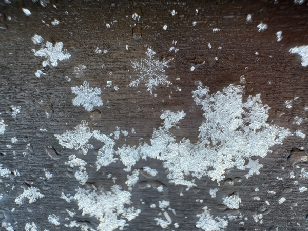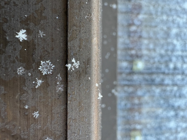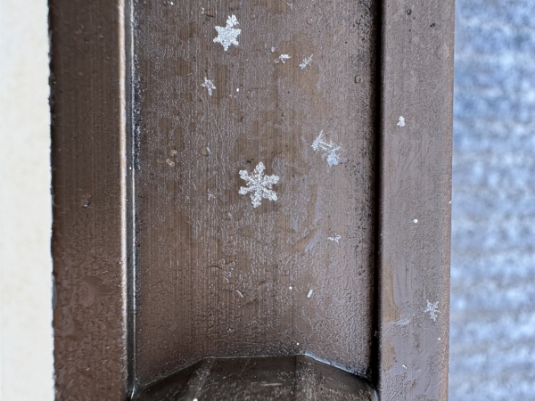 写真は雪が降った日の朝、ベランダでみつけた雪の結晶です。すぐに溶けて消えていくので夢中でカメラに収めました